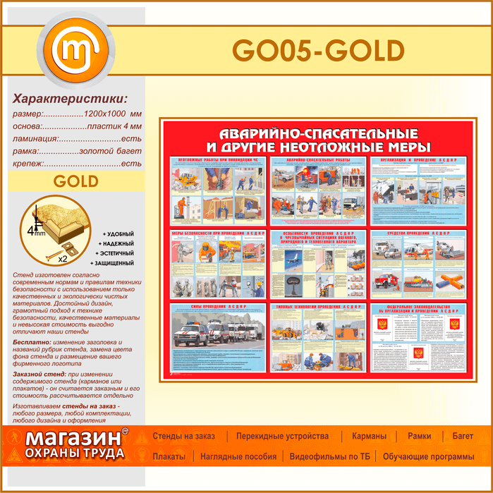 Стенд «Аварийно-спасательные и другие неотложные меры» (GO-05-GOLD) в Черкесске купить