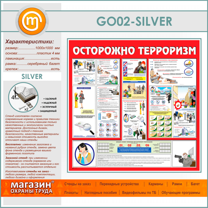 Стенд «Осторожно терроризм!» (GO-02-SILVER) в Черкесске купить