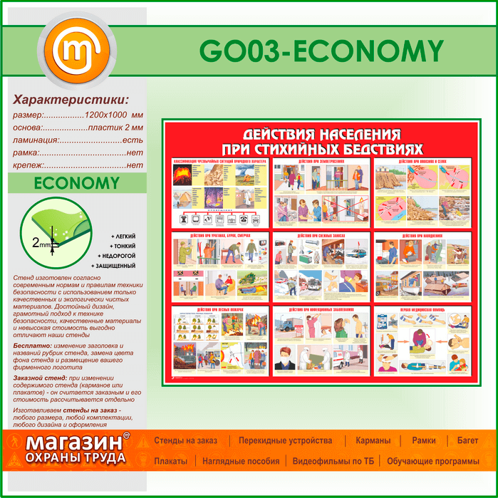 Стенд «Действия населения при стихийных бедствиях» (GO-03-ECONOMY) в Черкесске купить