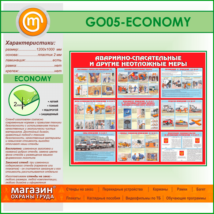 Стенд «Аварийно-спасательные и другие неотложные меры» (GO-05-ECONOMY) в Черкесске купить