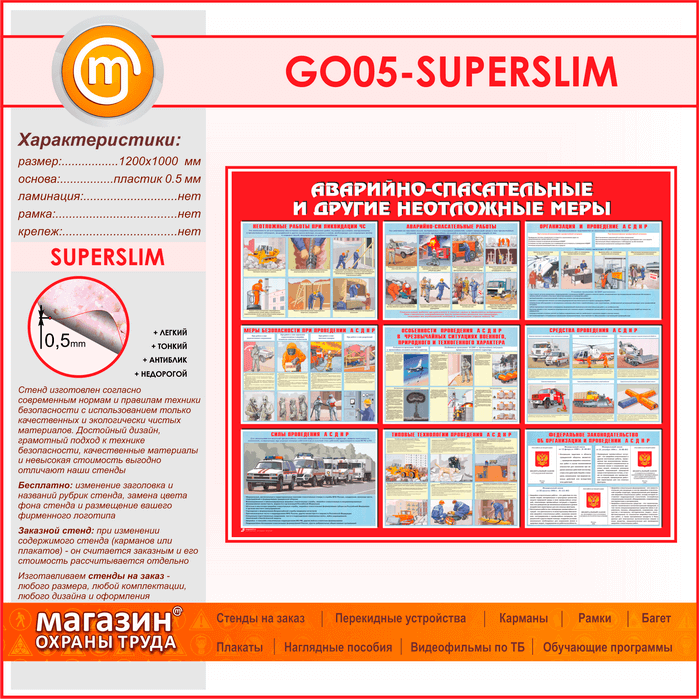 Стенд «Аварийно-спасательные и другие неотложные меры» (GO-05-SUPERSLIM) в Черкесске купить