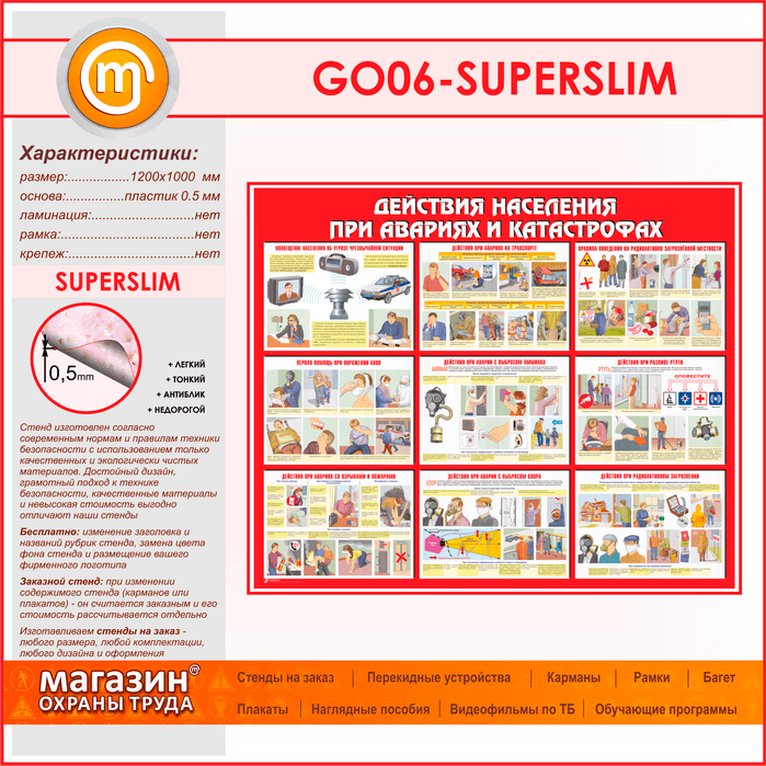 Стенд «Действия населения при авариях и катастрофах» (GO-06-SUPERSLIM) в Черкесске купить