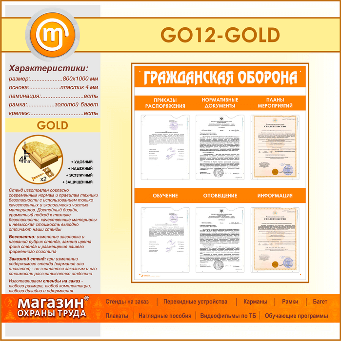 Стенд «Гражданская оборона» с 6 плоскими карманами (GO-12-GOLD) в Черкесске купить