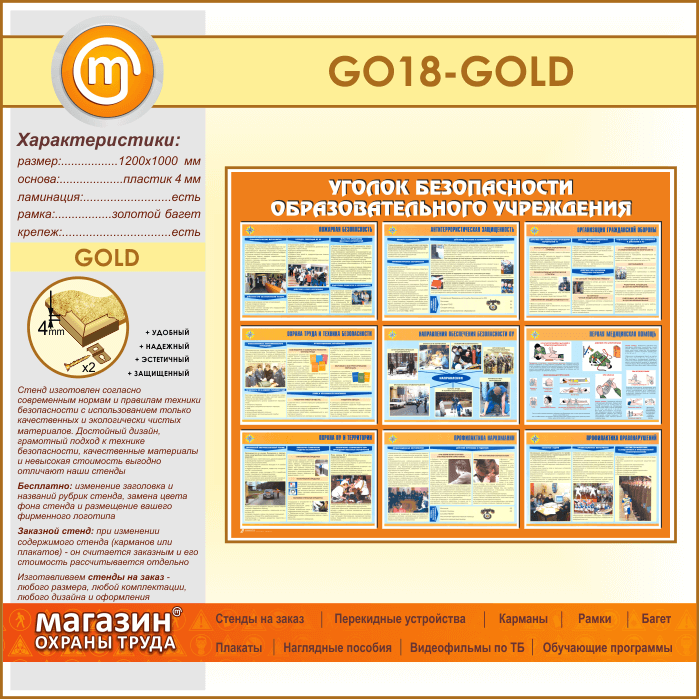 Стенд «Уголок безопасности образовательного учреждения» (GO-18-GOLD) в Черкесске купить