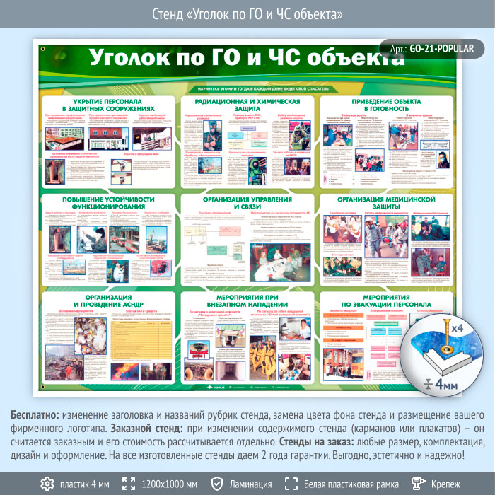 Стенд «Уголок по ГО и ЧС объекта» (GO-21-POPULAR) в Черкесске купить