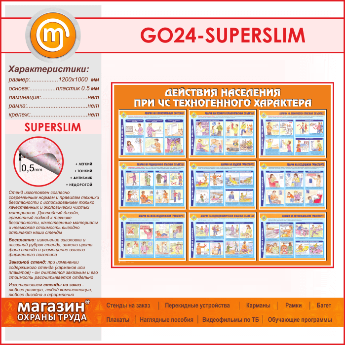 Стенд «Действия населения при ЧС техногенного характера» (GO-24-SUPERSLIM) в Черкесске купить