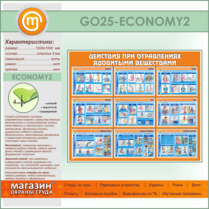 Стенд «Действия при отравлении ядовитыми веществами» (GO-25-ECONOMY2) в Черкесске купить