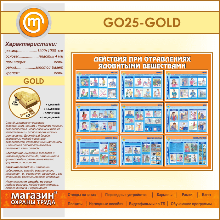 Стенд «Действия при отравлении ядовитыми веществами» (GO-25-GOLD) в Черкесске купить