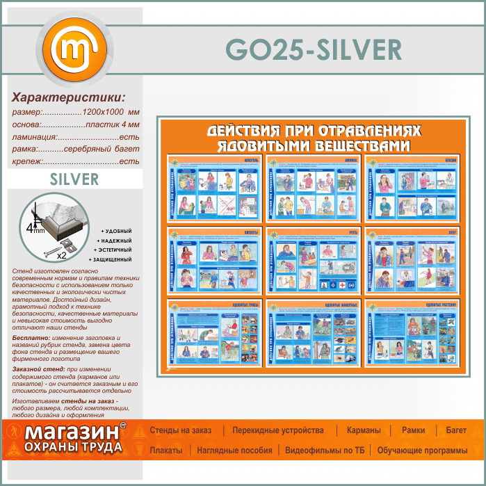 Стенд «Действия при отравлении ядовитыми веществами» (GO-25-SILVER) в Черкесске купить