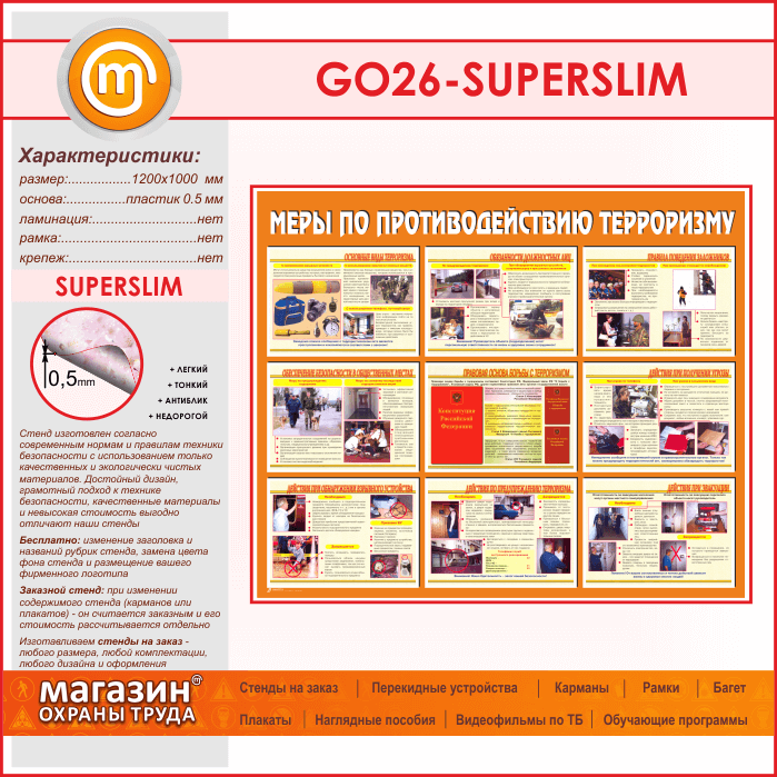 Стенд «Меры по противодействию терроризму» (GO-26-SUPERSLIM) в Черкесске купить