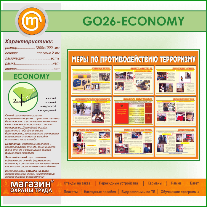Стенд «Меры по противодействию терроризму» (GO-26-ECONOMY) в Черкесске купить