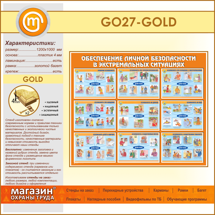 Стенд «Обеспечение личной безопасности в экстремальных ситуациях» (GO-27-GOLD) в Черкесске купить