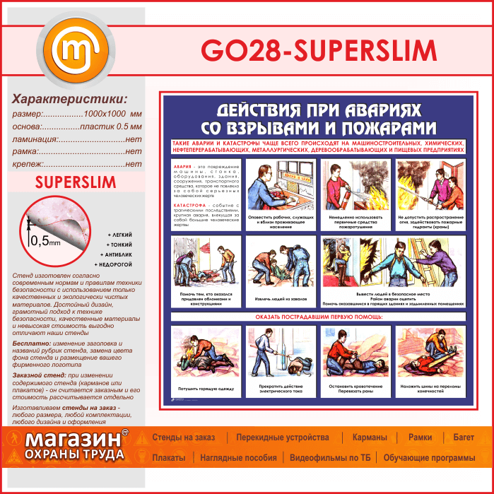 Стенд «Действия при авариях со взрывами и пожарами» (GO-28-SUPERSLIM) в Черкесске купить