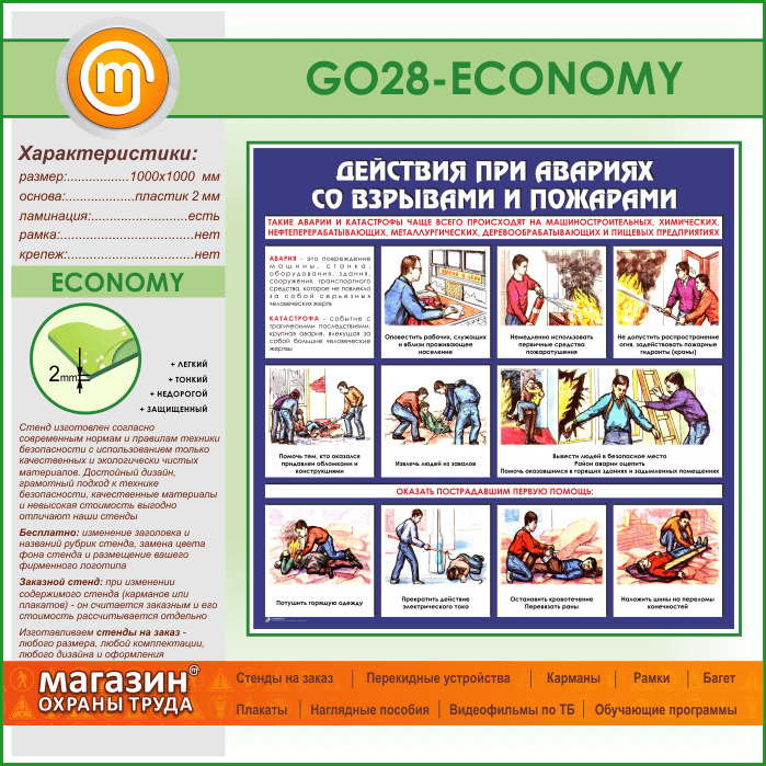 Стенд «Действия при авариях со взрывами и пожарами» (GO-28-ECONOMY) в Черкесске купить