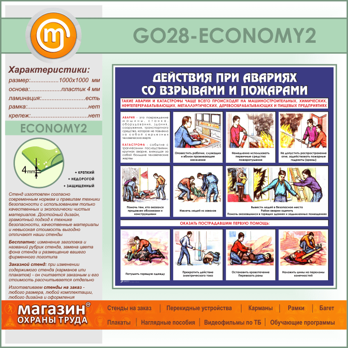 Стенд «Действия при авариях со взрывами и пожарами» (GO-28-ECONOMY2) в Черкесске купить