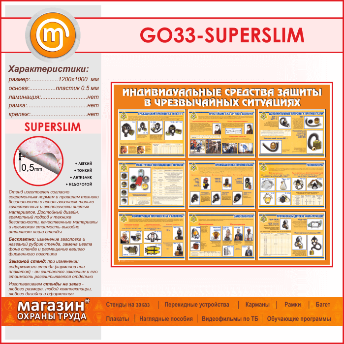 Стенд «Индивидуальные средства защиты в чрезвычайных ситуациях» (GO-33-SUPERSLIM) в Черкесске купить