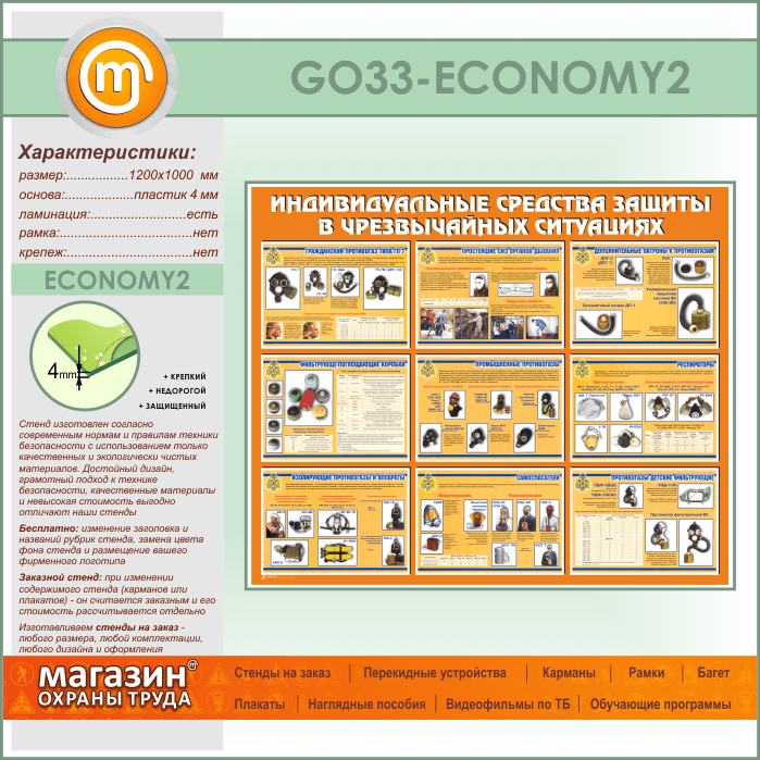 Стенд «Индивидуальные средства защиты в чрезвычайных ситуациях» (GO-33-ECONOMY2) в Черкесске купить