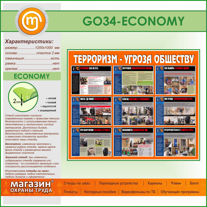 Стенд «Терроризм - угроза обществу» (GO-34-ECONOMY) в Черкесске купить