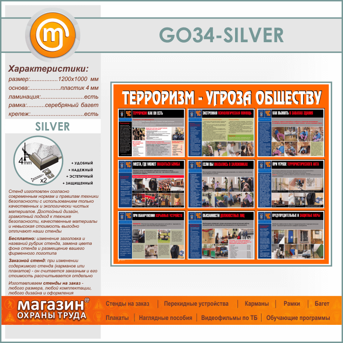Стенд «Терроризм - угроза обществу» (GO-34-SILVER) в Черкесске купить