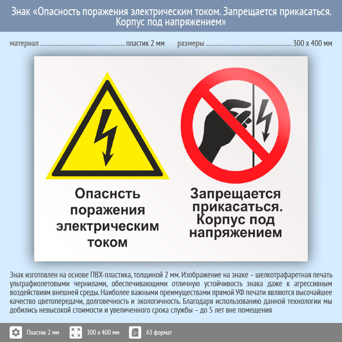 Знак «Опасность поражения электрическим током. Запрещается прикасаться. Корпус под напряжением», КЗ-47 (пластик, 400х300 мм) в Черкесске купить