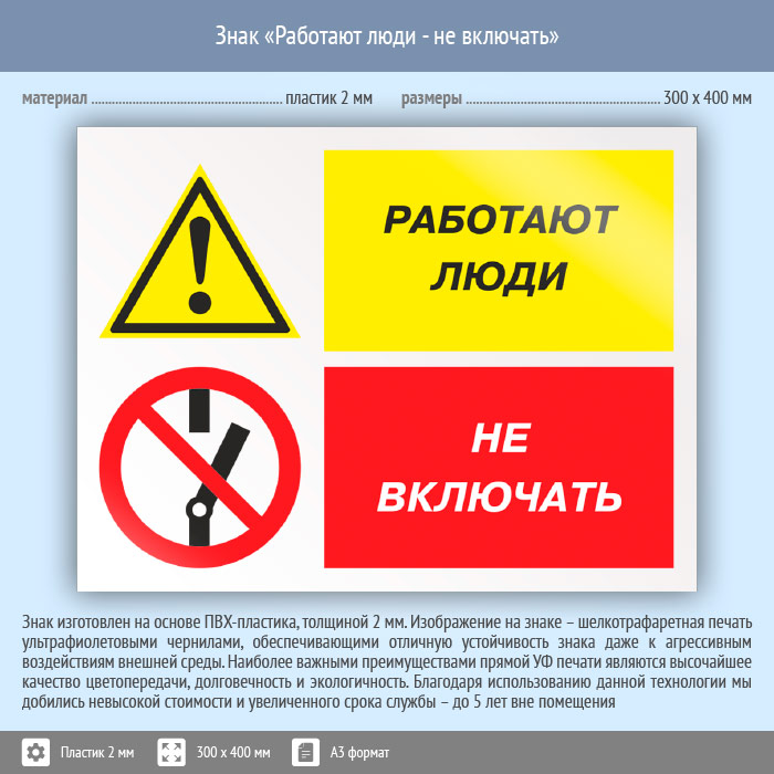 Знак «Работают люди - не включать», КЗ-83 (пластик, 400х300 мм) в Черкесске купить