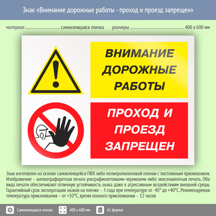 Знак «Внимание дорожные работы - проход и проезд запрещен», КЗ-14 (пленка, 600х400 мм) в Черкесске купить