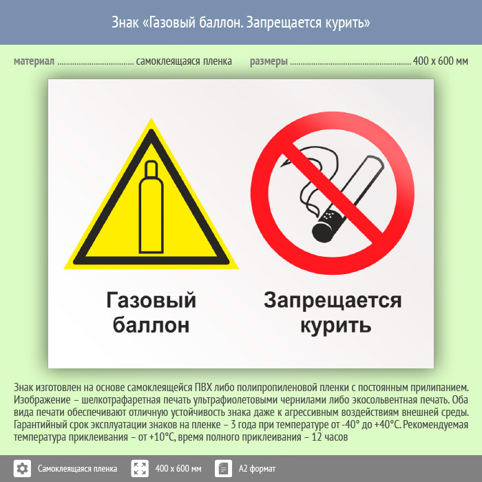 Знак «Газовый баллон. Запрещается курить», КЗ-18 (пленка, 600х400 мм) в Черкесске купить