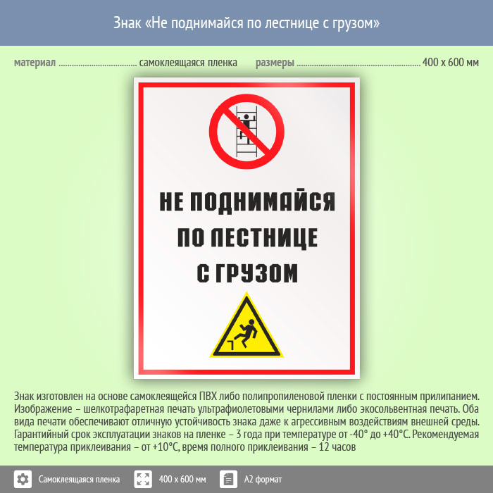Знак «Не поднимайся по лестнице с грузом», КЗ-28 (пленка, 400х600 мм) в Черкесске купить