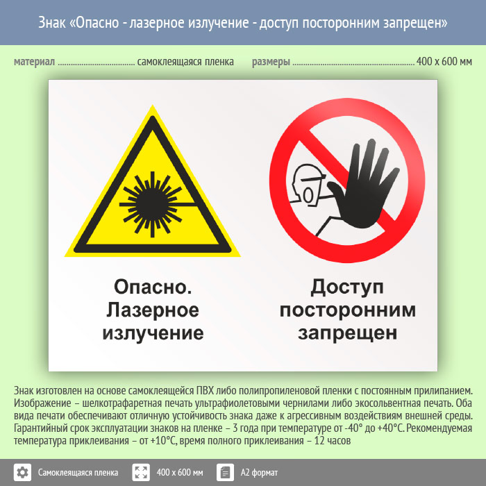 Знак «Опасно - лазерное излучение - доступ посторонним запрещен», КЗ-37 (пленка, 600х400 мм) в Черкесске купить