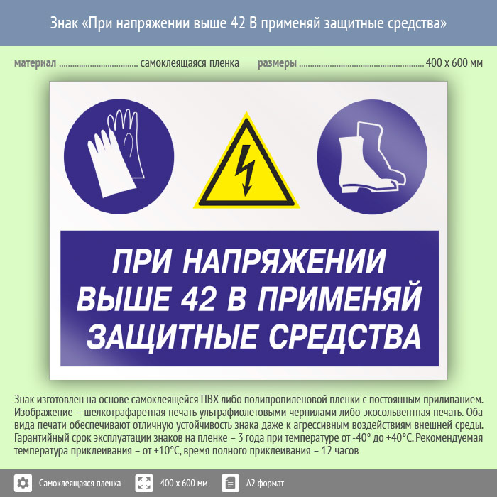 Знак «При напряжении выше 42 В применяй защитные средства», КЗ-72 (пленка, 600х400 мм) в Черкесске купить