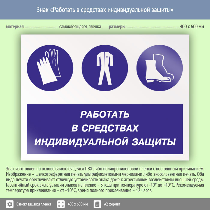 Знак «Работать в средствах индивидуальной защиты», КЗ-81 (пленка, 600х400 мм) в Черкесске купить