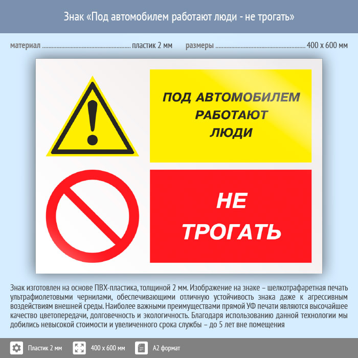 Знак «Под автомобилем работают люди - не трогать», КЗ-66 (пластик, 600х400 мм) в Черкесске купить