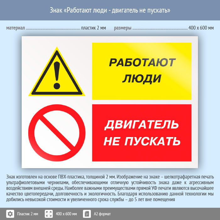 Знак «Работают люди - двигатель не пускать», КЗ-82 (пластик, 600х400 мм) в Черкесске купить