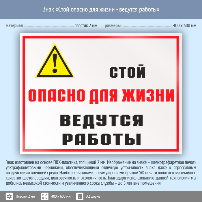 Знак «Стой опасно для жизни - ведутся работы», КЗ-86 (пластик, 600х400 мм) в Черкесске купить