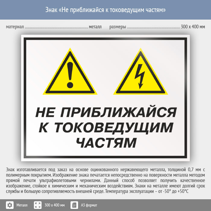 Знак «Не приближайся к токоведущим частям», КЗ-29 (металл, 400х300 мм) в Черкесске купить