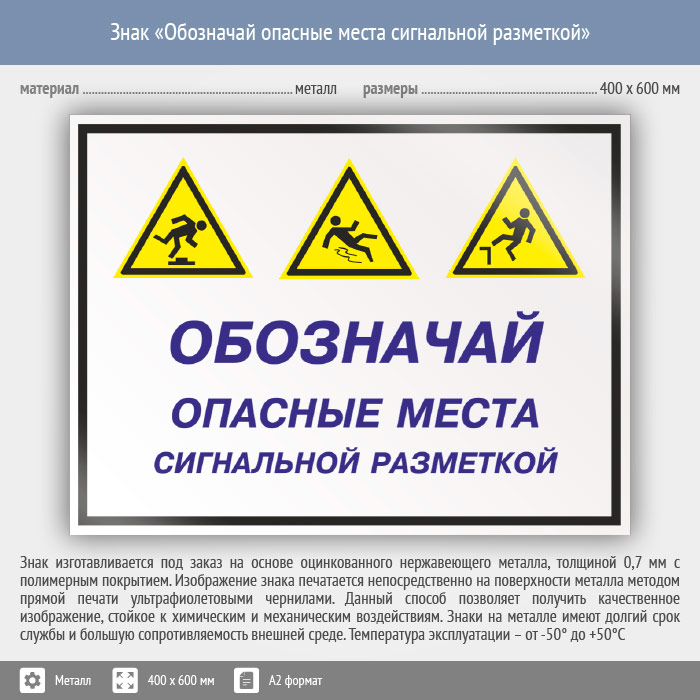 Знак «Обозначай опасные места сигнальной разметкой», КЗ-30 (металл, 600х400 мм) в Черкесске купить
