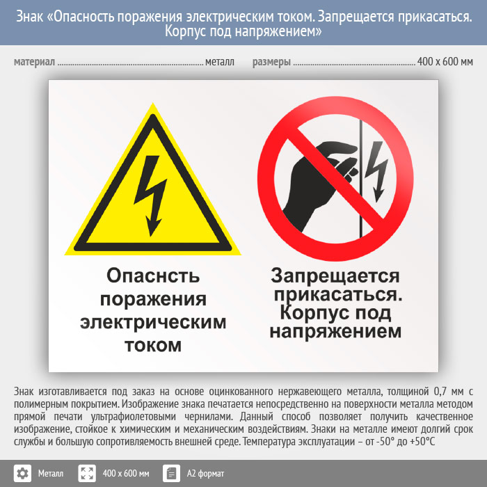 Знак «Опасность поражения электрическим током. Запрещается прикасаться. Корпус под напряжением», КЗ-47 (металл, 600х400 мм) в Черкесске купить