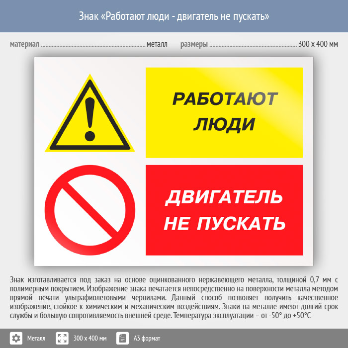 Знак «Работают люди - двигатель не пускать», КЗ-82 (металл, 400х300 мм) в Черкесске купить