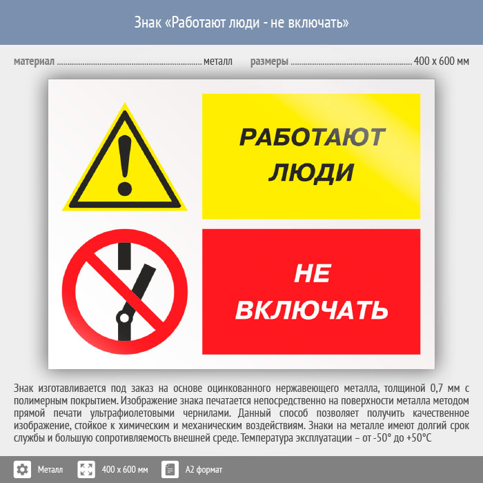 Знак «Работают люди - не включать», КЗ-83 (металл, 600х400 мм) в Черкесске купить