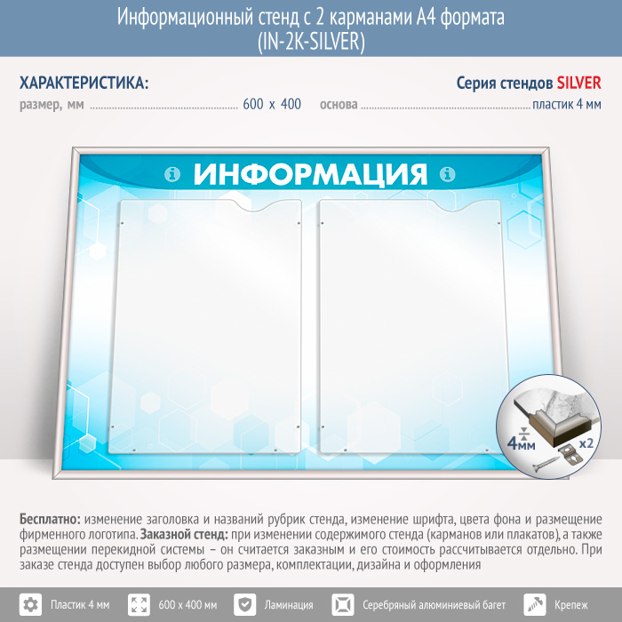 Информационный стенд с 2 карманами А4 формата (IN-2K-SILVER) в Черкесске купить
