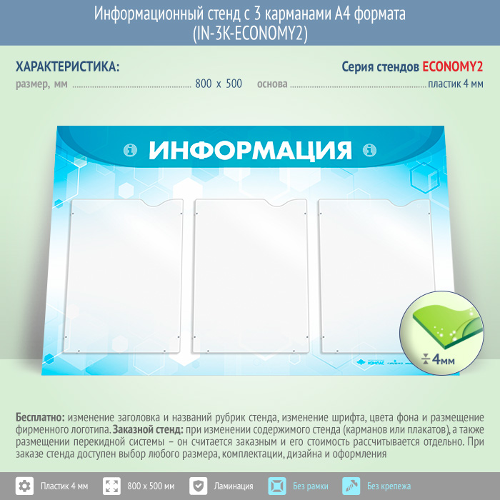 Информационный стенд с 3 карманами А4 формата (IN-3K-ECONOMY2) в Черкесске купить