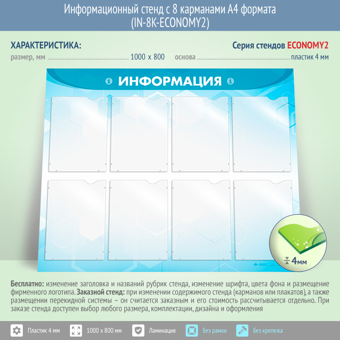 Информационный стенд с 8 карманами А4 формата (IN-8K-ECONOMY2) в Черкесске купить