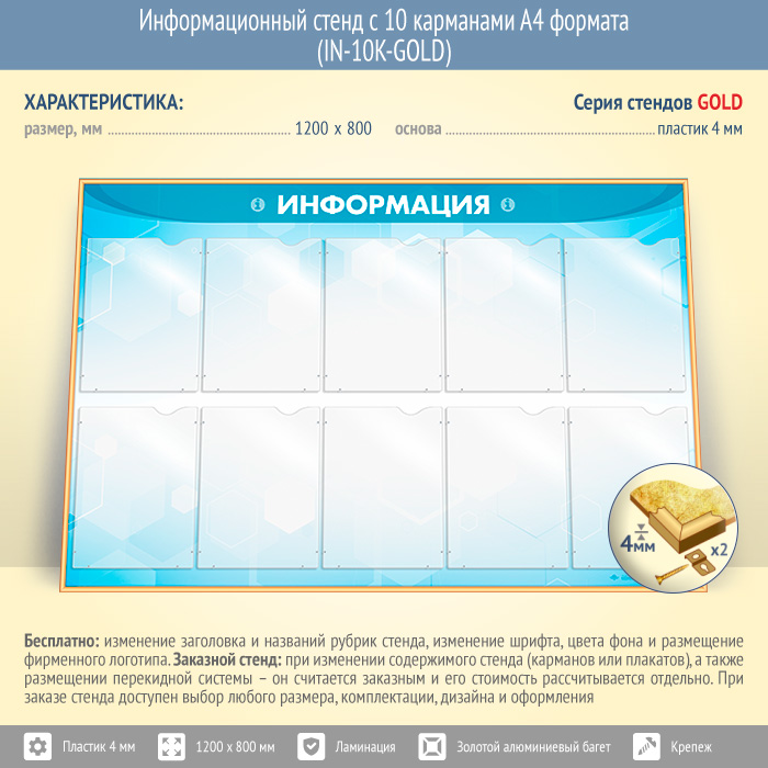 Информационный стенд с 10 карманами А4 формата (IN-10K-GOLD) в Черкесске купить