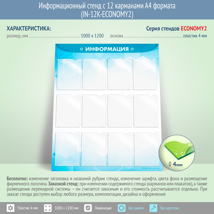Информационный стенд с 12 карманами А4 формата (IN-12K-ECONOMY2) в Черкесске купить