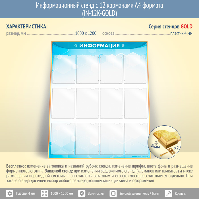 Информационный стенд с 12 карманами А4 формата (IN-12K-GOLD) в Черкесске купить