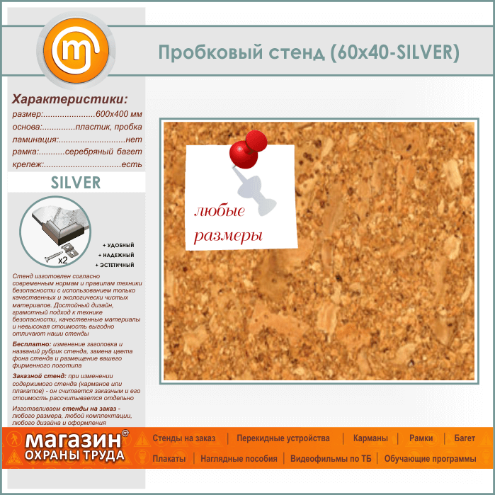 Пробковая доска, 60х40 см (IN-05-SILVER) в Черкесске купить