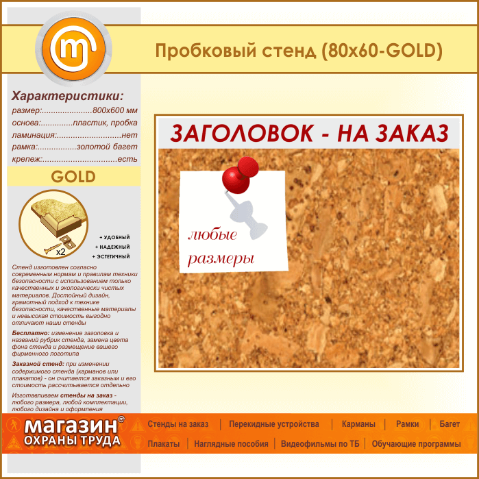 Пробковая доска с заголовком, 80х60 см (IN-06-GOLD) в Черкесске купить