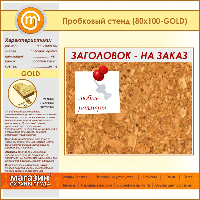 Пробковая доска с заголовком, 100х80 см (IN-06-GOLD) в Черкесске купить