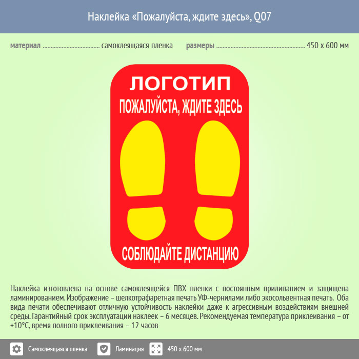 Наклейка на пол «Пожалуйста, ждите здесь», Q07 (пленка c ламинированием, 450х600 мм) в Черкесске купить