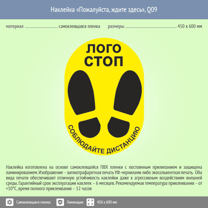Наклейка на пол «Пожалуйста, ждите здесь», Q09 (пленка c ламинированием, 450х600 мм) в Черкесске купить